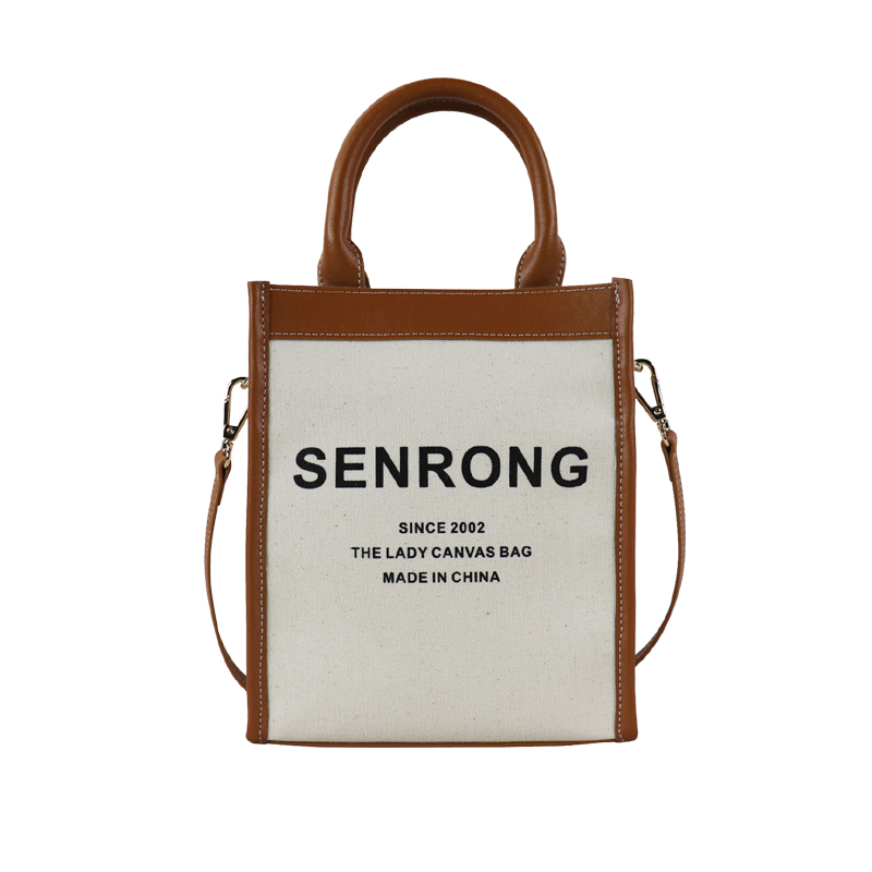 復古女士pu拼接帆布大牌帆布包 簡約設計女包托特包